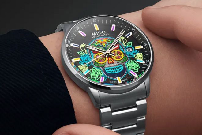 但今天要介绍的是这支指挥官系列的亡灵节限定款,它的设计灵感源自墨西哥的标志性文化符号:La Catrina与El Catrín,自Porfiriato时期风靡至今,成为了拉美文化中很重要的一部分。早在2020年,美度就已经开始推出亡灵节限定款,至今已经持续了6年。今年令玩家们振奋的是,这个系列限定款,终于在墨西哥地区以外发售了,意味着粉丝有机会通过官方渠道入手这款表。
