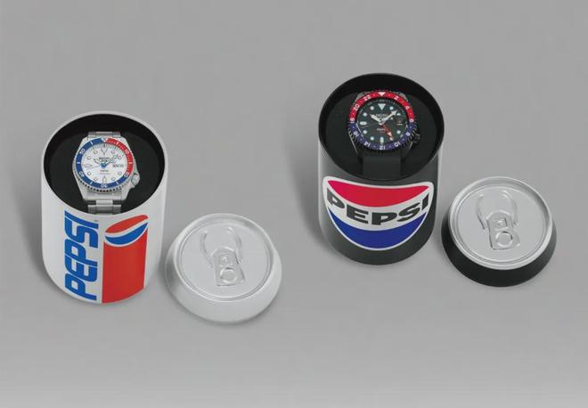 两枚腕表都采用了百事可乐易拉罐造型的表盒,各限量发行7000枚。其中白色款售价380欧元,约合人民币3200元,黑色款售价540欧元,约合人民币4500元。