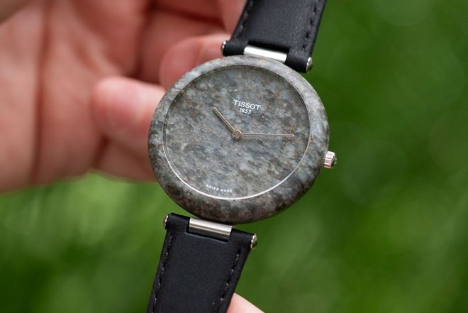 除了底盖全部用天然花岗岩制作的,还真挺少见的。不好预测的市场反馈,不菲的成本投入摆在眼前,所以不是每个品牌都有动力去做这件事,天梭也算敢为人先了,并且确实在历史上取得了成功。